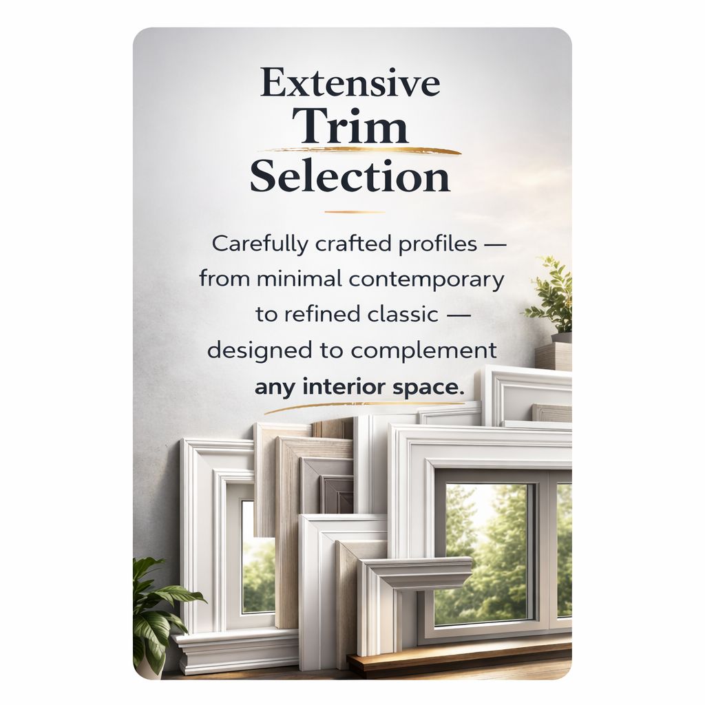 All trim styles can be customized to match your window design and interior preferences.